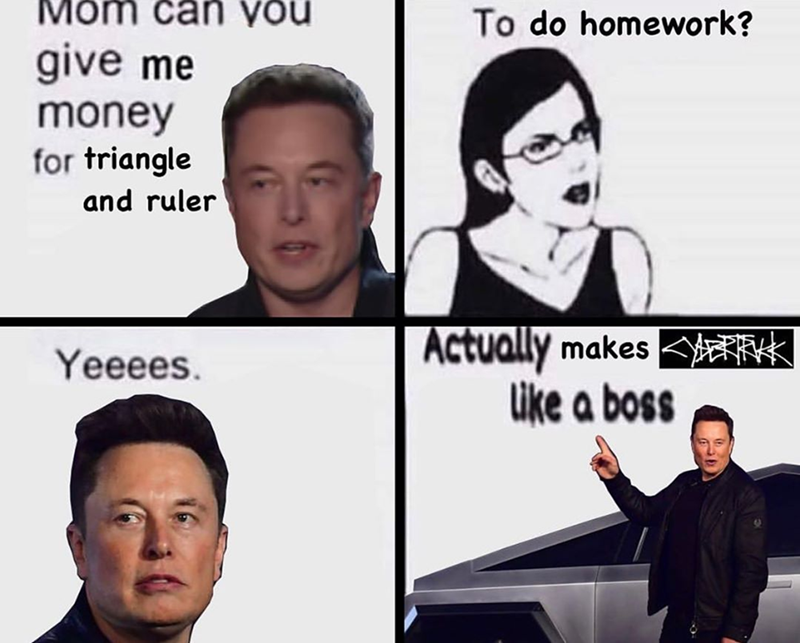 Your daily dose of app extra features: At elon musk memes, our mission is to accelerate the world's transition to sustainable production an. Or is this a moon & shoulders pattern forming. He was deeply problematic, but it was easy to ignore because he was. The collaboration has been a long time coming. Post memes about elon musk or his projects, or really anyone named elon post images or gifs only. Trending images, videos and gifs related to elon musk! 43 hilarious elon musk memes of october 2019. I made a meme with a 2016 interview from elon, please feel free to repost this image and or this meme anywhere. Pornhub awards first user to reach one million videos watched. The definitive taxonomy of funny elon musk memes. Elon musk was the manic pixie dream boy of tech: Apparently russia has this meme where they @ elon musk in pictures of super stupid bootleggy.who knew russians were meme masters?(well, actually, i guess russians knew.
